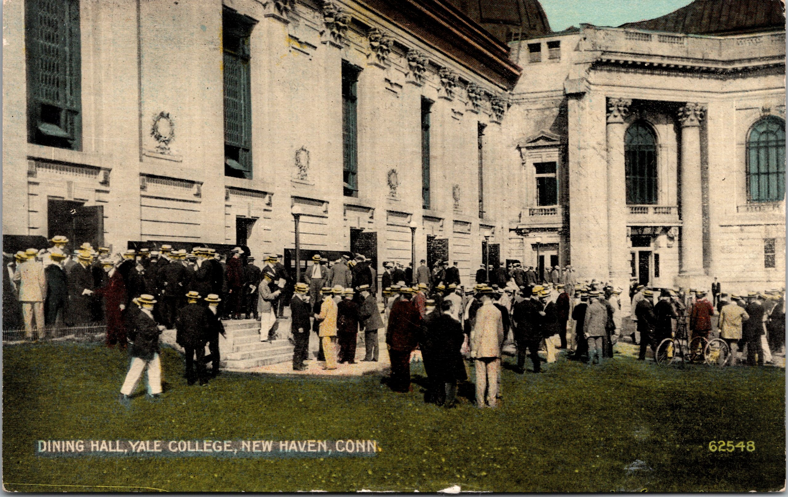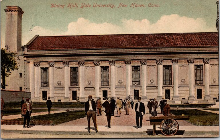 Beinecke Plaza was originally developed as the building-site for the Bicentennial Buildings in 1901, including Commons, Woolsey Hall, and the Memorial Rotunda.  It was first known as University Court upon completion in 1917.  With the construction of the Beinecke Rare Book & Manuscript Library in 1963, the surrounding paved courtyard was re-designed and the name “Beinecke Plaza” came into common use.  The plaza has since served as a central gathering place on campus for ceremonial events, student activism, and public art installations—underscoring its role as the symbolic heart of the Yale campus.