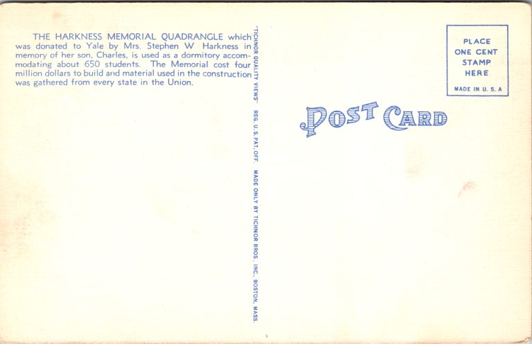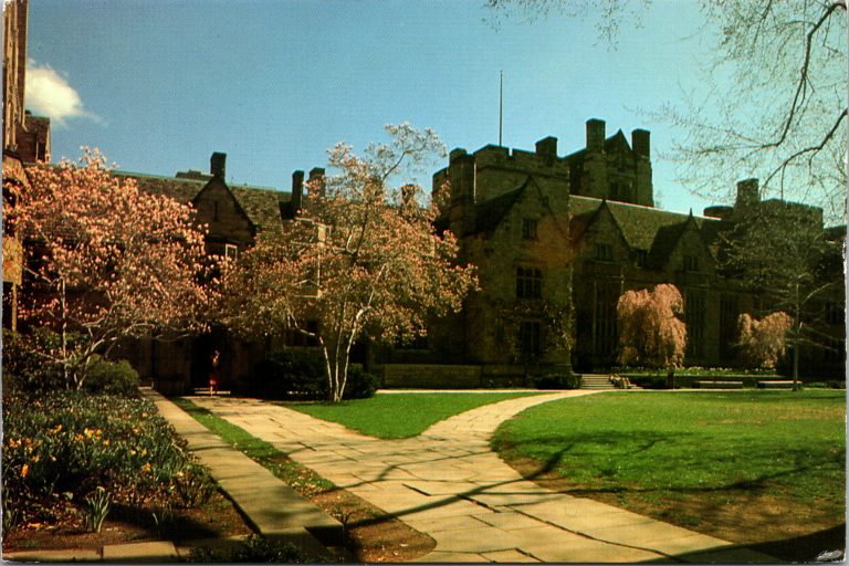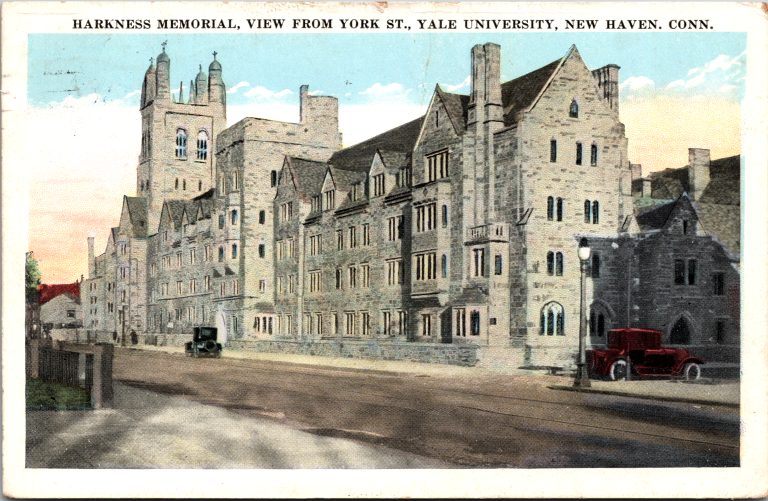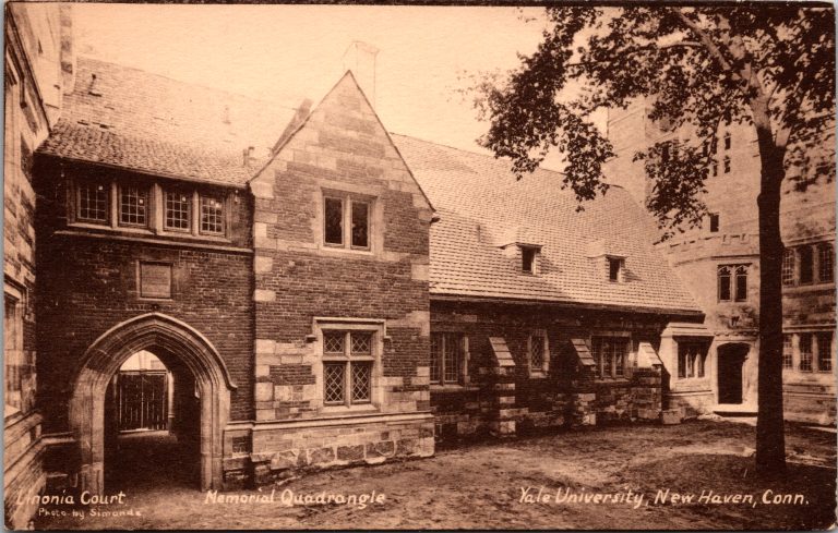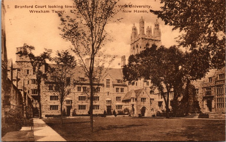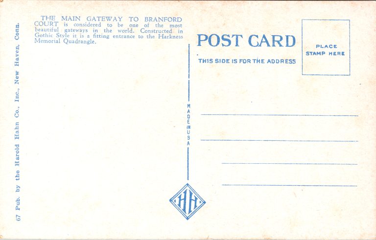 Branford College was created in 1933 when Yale divided the Memorial Quadrangle—James Gamble Rogers’s 1917–21 Gothic masterpiece—into two new residential colleges, with Branford occupying the larger portion, and Saybrook College occupying the other. Its courtyards and entryways fold around some of Yale’s most iconic architecture, notably including the base of Harkness Tower and its 54-bell carillon anchoring one corner of the main courtyard. Named for the nearby town where Yale once briefly resided, Branford retains a reputation—dating to its earliest days—for being serene and full of hidden architectural gems.