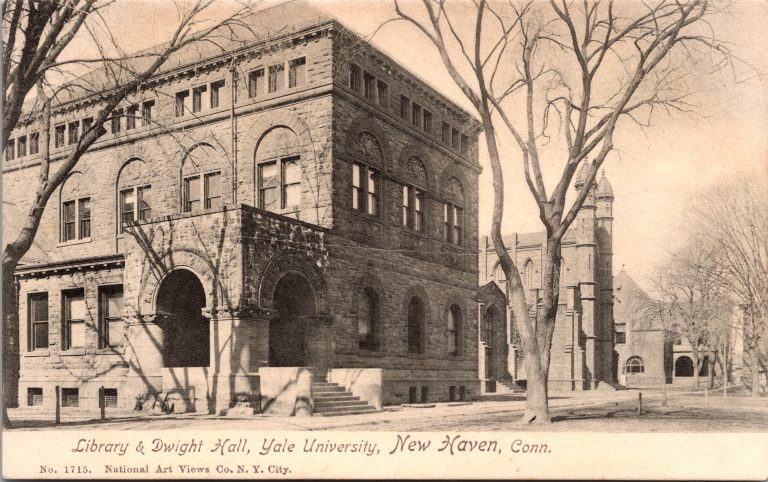 Prior to when 67 High Street assumed the name Dwight Hall, another (now demolished) building on Old Campus was known as Dwight Hall.  Built in 1886, the Old Dwight Hall served as Yale’s new YMCA headquarters, rising out of the Muscular Christianity movement that swept American campuses in the late 19th century.