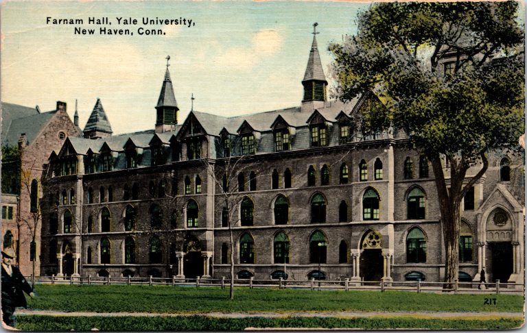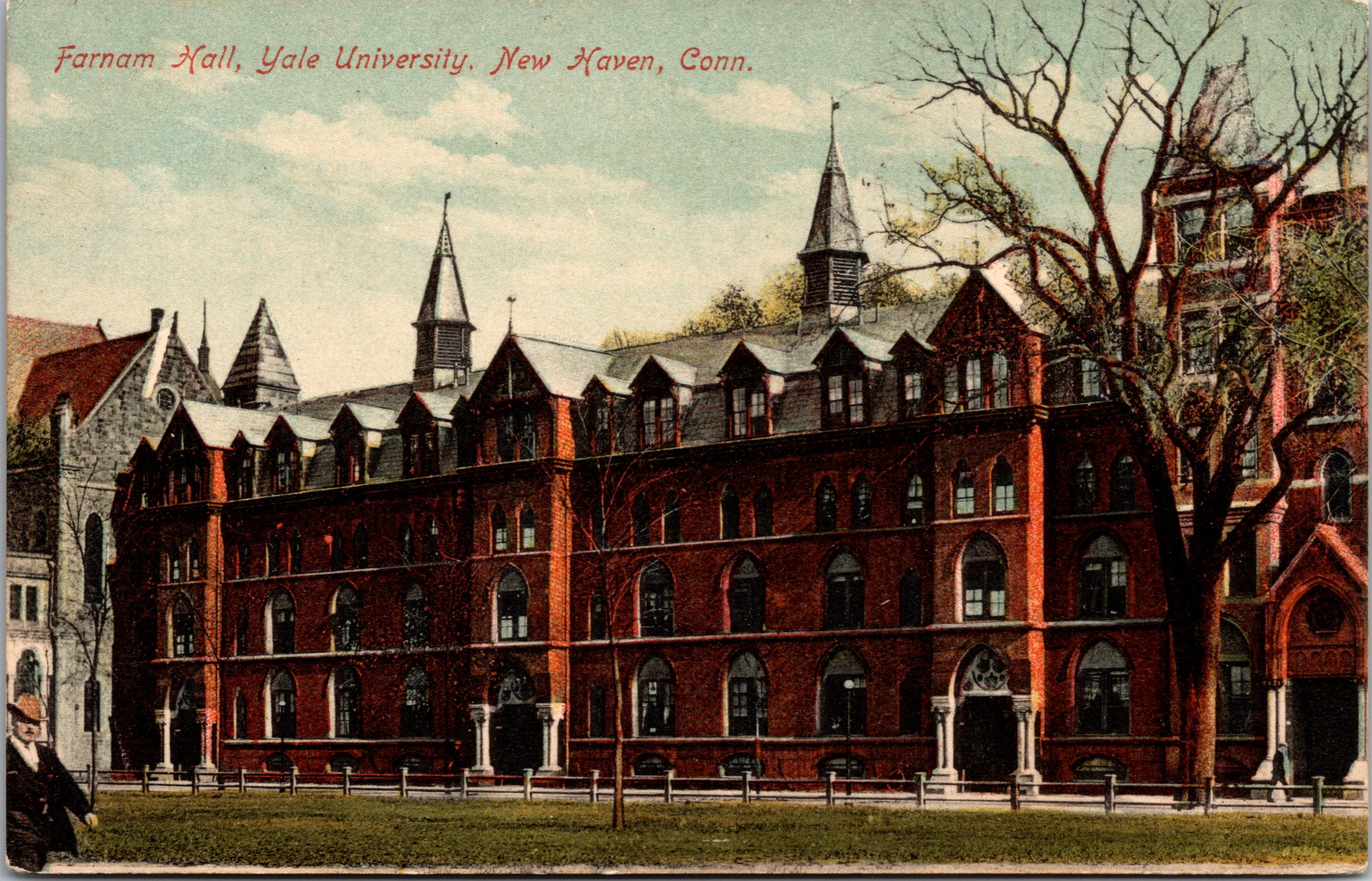 Farnam Hall, completed in 1870, was the first of the Victorian Gothic dormitories built during Yale’s 19th-century redevelopment of what would become Old Campus. Designed by Russell Sturgis, it represented a sharp break from Yale’s older Georgian brick buildings, introducing pointed arches, stone trim, and a more picturesque silhouette. The hall was funded through the bequest of Henry Farnam, a railroad magnate and Yale benefactor, whose support helped launch the broader modernization of Yale’s residential facilities. For many years it housed a mix of upper-classmen and, later, first-year students as the Old Campus became the hub of freshman life. Today, Farnam remains a defining landmark on the southern edge of Old Campus and is home to the freshmen of Jonathan Edwards College.