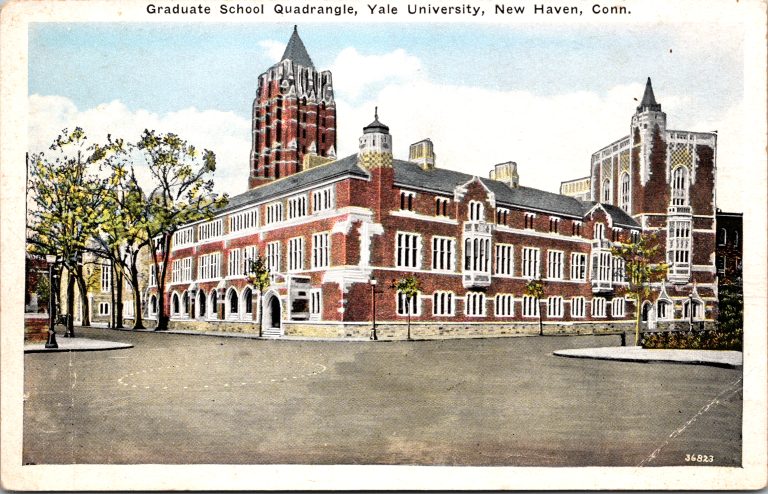 The Humanities Quadrangle, originally the Hall of Graduate Studies, opened in 1932 as a Collegiate Gothic complex designed by architect James Gamble Rogers to house Yale’s growing Graduate School. Built on a site previously occupied by workshops, fraternities, and even a wheel factory, the quadrangle featured offices, classrooms, dormitories, and a 200-foot central tower. After more than eight decades of continuous use, Yale launched a major renovation beginning in 2018, supported by a substantial gift that named the building’s signature tower in honor of longtime Yale chief investment officer David Swensen. Delayed slightly by the pandemic, the renewed complex reopened in 2021 as Humanities Quadrangle, now home to 15 humanities departments, over 300 offices, nearly 30 classrooms, and extensive meeting spaces. Today, Humanities Quadrangle and Swensen Tower stand as one of Yale’s most significant academic hubs—a landmark visible from many parts of campus that blends historic Gothic design with the many elements of a modern academic research building.