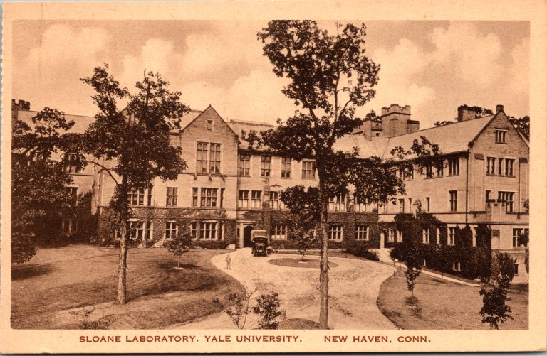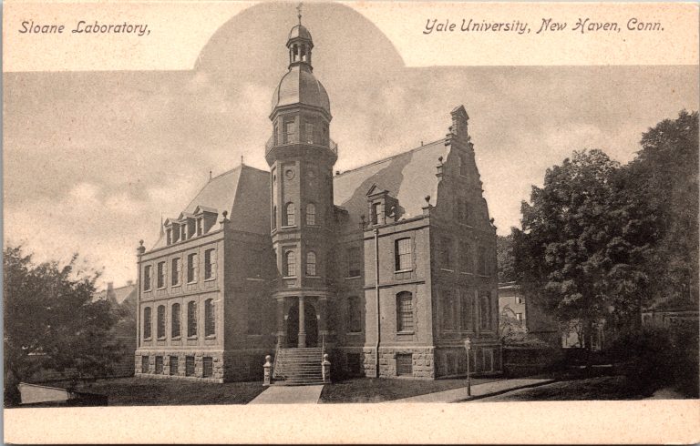 Jonathan Edwards College was one of the original eight residential colleges — completed in 1933 — and named for Jonathan Edwards (YC 1720), the theologian, philosopher, and later Yale president. Its site was a dense downtown block of small commercial structures and boarding houses between High and York, cleared during Yale’s great 1930–33 building campaign. Among the structures previously on the footprint of today’s JE College included the Sloan Physics Laboratory (1890s), an important Sheff/early-Yale science building that stood roughly where the JE Master’s House sits today. Designed by James Gamble Rogers, JE was intentionally small and “Oxford-tight,” with the most carefully scaled courtyards and some of the most detailed Gothic stone carving of any of the colleges. Its size and architectural intimacy created an unusually strong internal culture almost immediately, and JE remains famous for being one of Yale’s most cohesive and tradition-centric residential communities.