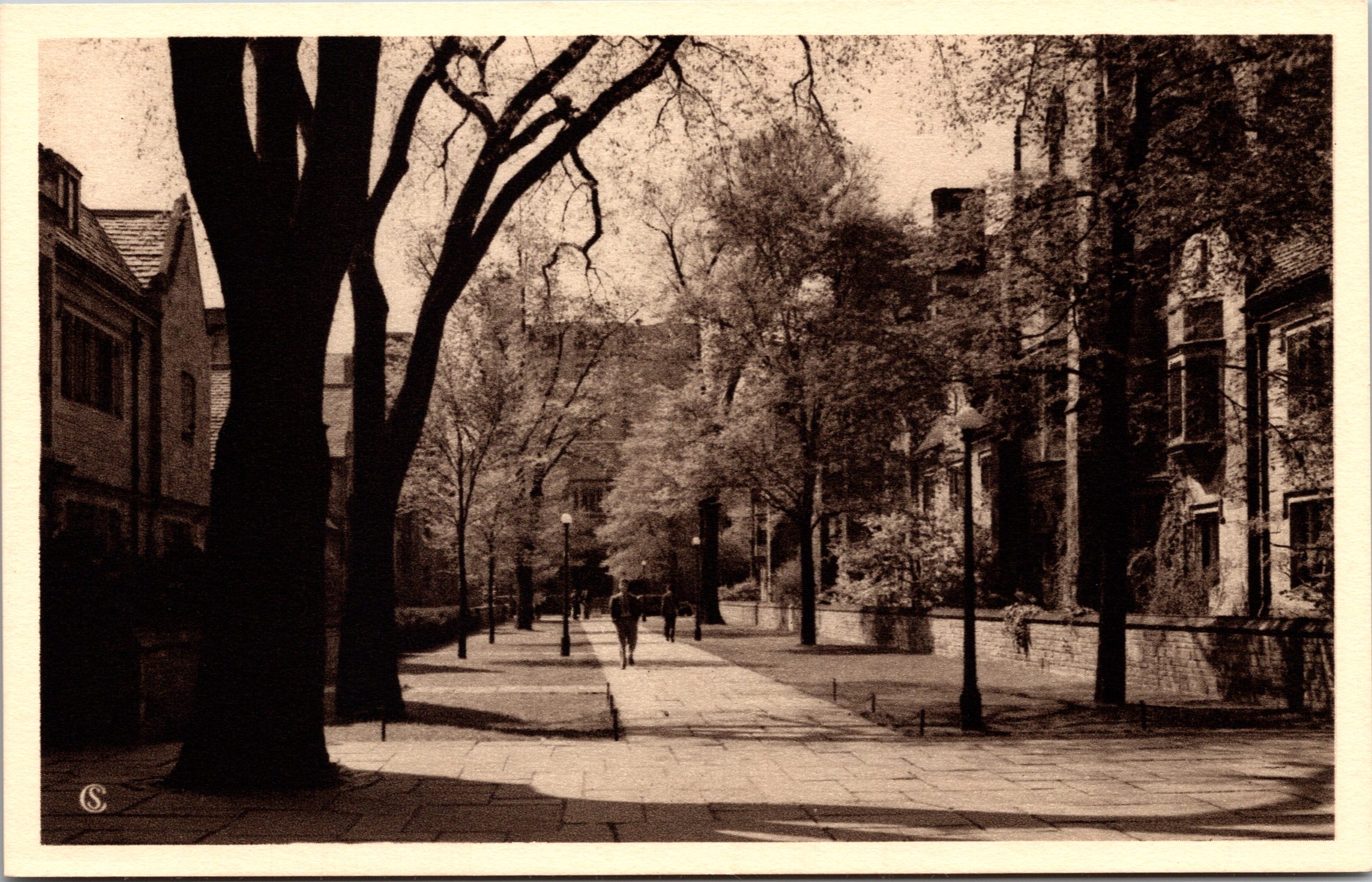 Library Walk, the quiet passage between today’s Branford College and Jonathan Edwards College, traces its origins to a small 19th-century roadway once known as Library Street as Yale’s early library buildings rose nearby. In the early 1930s, when Yale created its first residential colleges, the University cleared the old block north of Old Campus and closed Library Street to traffic. Its footprint was preserved but narrowed and landscaped, becoming a pedestrian path woven into the new Gothic colleges designed by James Gamble Rogers. Over time, the former street evolved into the intimate walkway officially Library Walk—one of Yale’s most scenic paths between two of its most iconic residential colleges.