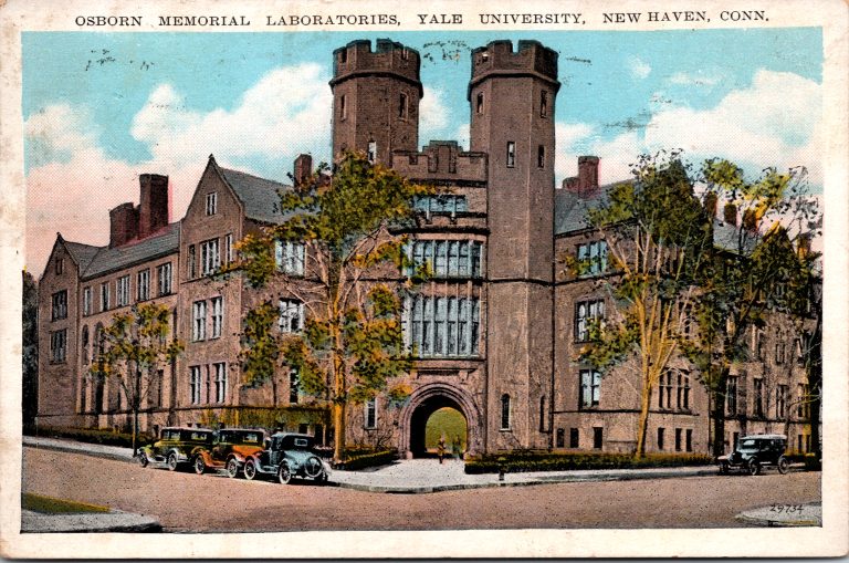 Osborn Memorial Laboratories were completed in 1913 as Yale’s central home for the biological sciences, housing zoology and botany in twin wings along Sachem and Prospect Streets. Designed by noted architect Charles C. Haight, the masonry complex sits at the edge of the former Hillhouse estate, anchoring what later became known as Science Hill. Its carriage-arch entrance once led to a library with a faux-sky ceiling, and over the decades the building’s laboratories and offices have been repeatedly reconfigured as Yale’s scientific needs evolved. The facility has hosted landmark work by scholars such as Joshua Lederberg and G. Evelyn Hutchinson, and today it is primarily home to the Department of Ecology and Evolutionary Biology. Though its towers are no longer in active use, Osborn Memorial Laboratories remain a historic cornerstone of Yale’s scientific campus.