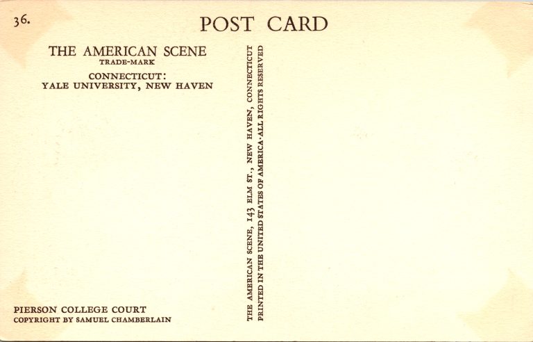 Pierson College opened in 1933 and is one of the original eight residential colleges funded by Edward Harkness and designed by James Gamble Rogers. Named for Abraham Pierson—the first rector of Yale, then still the Collegiate School—Pierson was designed in a Georgian Revival style inspired in part by Independence Hall, hinting at the founding role that Pierson had also played in a distinctly American chapter. In the years after Pierson’s founding, the college would itself prove worthy of its contributions “For Country“—graduating a disproportionate number of Yalies who entered the nation’s intelligence services during World War II. Yale’s largest residential college by number of students, the college’s open quadrangle amidst white-trimmed windows and classical detailing—a marked contrast to the Gothic architecture of most of the other early residential colleges—fosters an especially lively community that is itself a living tribute to how New England communities were even before the nation’s founding.