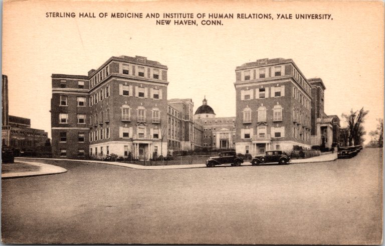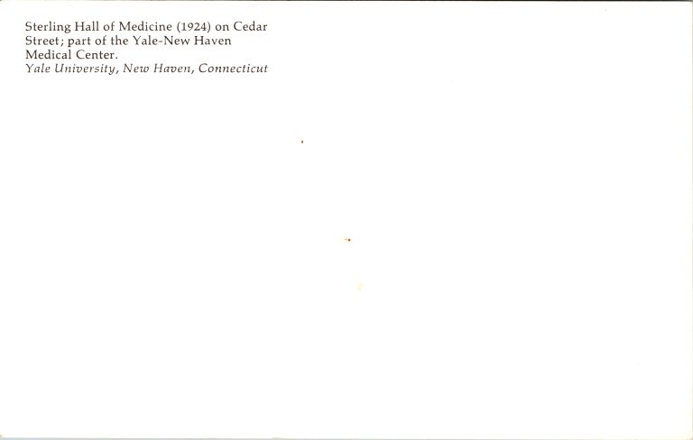 The Yale School of Medicine’s main building at 333 Cedar Street—today’s Sterling Hall of Medicine—was dedicated in 1925.  The building marked the centerpiece of the University’s move to consolidate its medical facilities into a unified campus in the heart of New Haven’s medical district. The building’s exhibits a mix of architectural styles and anchors a complex that soon expanded to include research labs, teaching facilities, and the adjoining Yale–New Haven Hospital. Through the mid-20th century, the area grew rapidly with additions such as the Brady Memorial Laboratory, reflecting Yale’s rising stature in biomedical research. By the late 1900s and early 2000s, new towers, clinics, and research institutes transformed 333 Cedar and its surroundings into a dense, interconnected medical campus. Today, it remains the intellectual and administrative core of one of the nation’s leading medical schools.