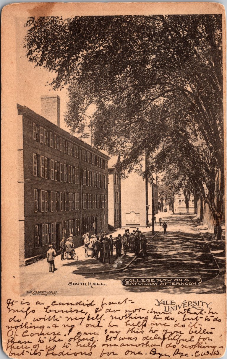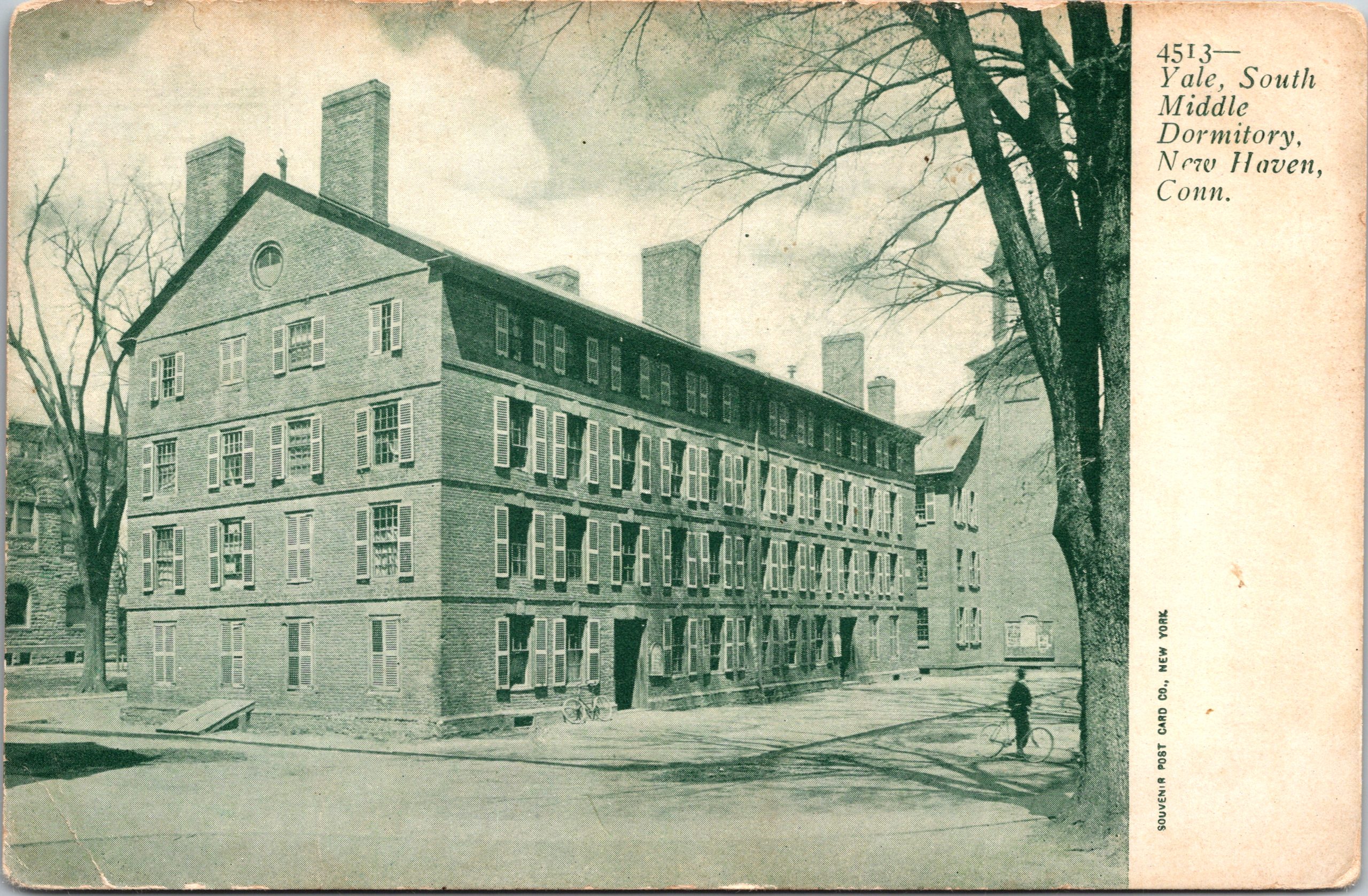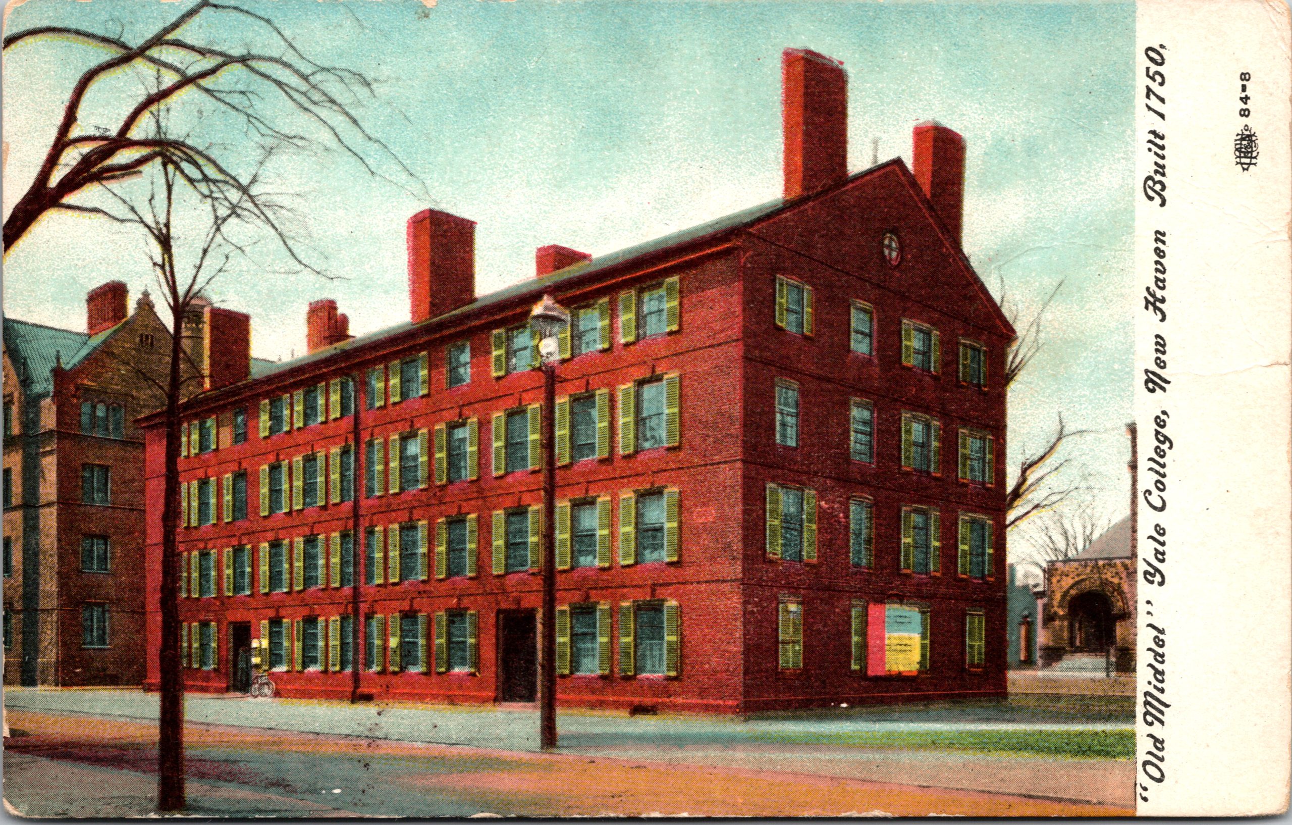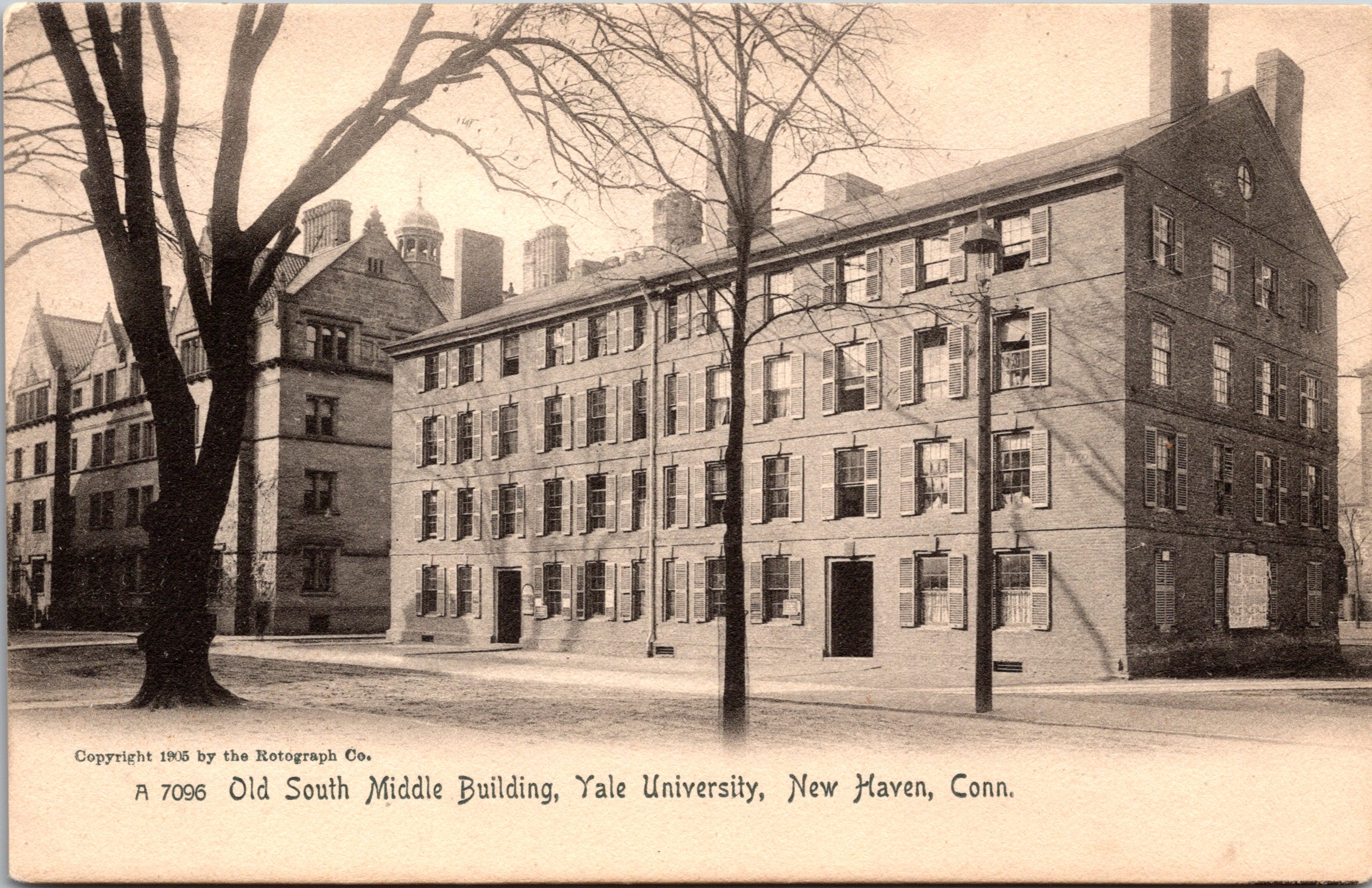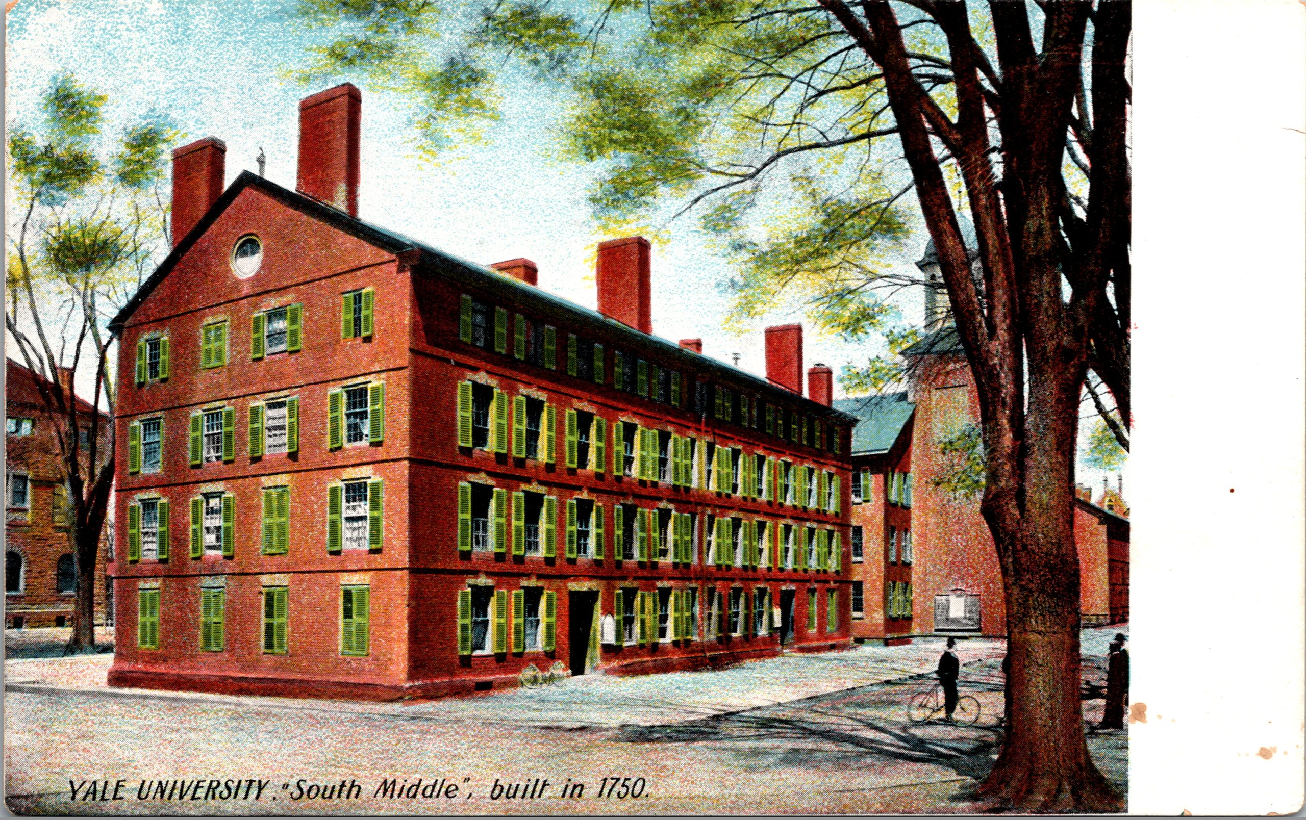 South Middle College — today known as Connecticut Hall — was completed in 1752 as Yale’s principal brick dormitory after the earlier wooden College House had become overcrowded. Built largely to plans borrowed from Harvard’s Massachusetts Hall, it anchored what would become Old Brick Row and originally housed nearly 100 student rooms beneath its gambrel roof. Over time, the building became known as South Middle College as Yale added other “colleges” of similar style to the Row. Though the rest of Old Brick Row was demolished in the late 19th and early 20th centuries, alumni advocacy saved South Middle, making it the only survivor of the original Old Brick Row, which was the earliest New Haven campus plan. The college would come to be renovated (sometimes thoroughly) over the decades and centuries, resulting in a building that today looks strikingly different enough than it did earlier in its life. Used as a residence for nearly two centuries, it later shifted to administrative and academic purposes and today houses Yale’s Department of Philosophy and the Faculty Room.
