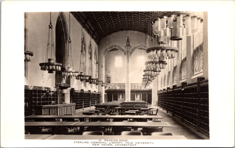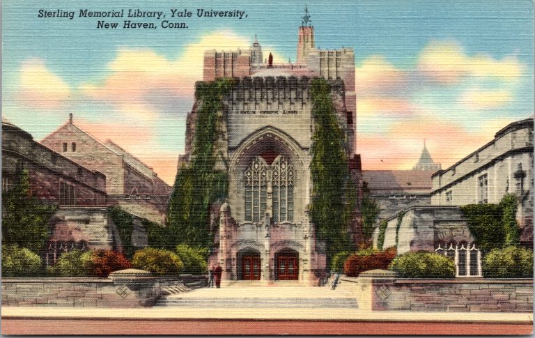 Sterling Memorial Library, opened in 1931, is Yale’s iconic cathedral-like library designed by James Gamble Rogers as the dramatic heart of the university’s Gothic revival campus. Funded by John W. Sterling’s transformative bequest, the building was intended not only to be icon of Yale’s libraries in the 20th century, but to be an almost hallowed symbol of Yale’s intellectual life, complete with a soaring nave, stained-glass windows, and intricately carved stonework. Its central stack tower originally housed more than two million volumes, making it one of the world’s largest open-stack systems when built. Over the decades, Sterling Library became the anchor of Yale’s library system, home to everything from rare materials to bustling reading rooms. A major renovation completed in the 2010s restored the library’s original splendor, ensuring the library remains both a working academic hub and one of the university’s most beloved architectural landmarks for the 21st century.