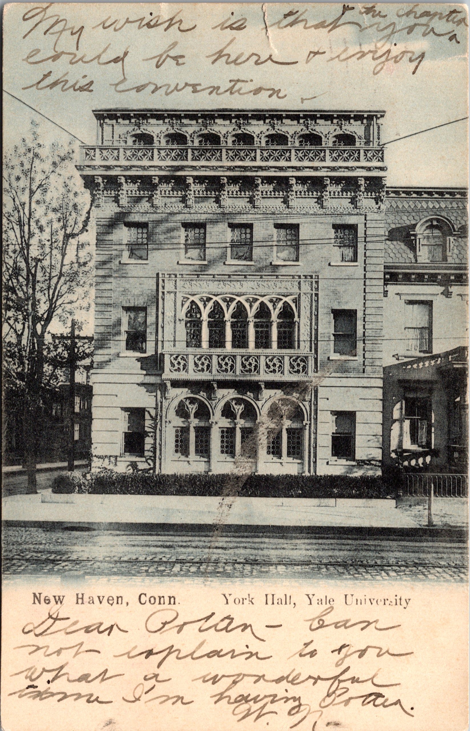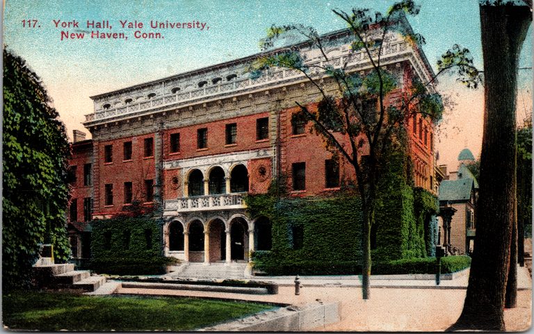 Stoeckel Hall, located at Wall and College Streets across from Sprague Hall, was originally built in 1897 by architect Grosvenor Atterbury for the Chi Phi fraternity.  First known as Chi Phi’s “York Hall”, Yale purchased the building in 1935 and converted it to music offices and studios in 1954, renaming it in honor of Gustave Stoeckel, the University’s first music instructor and a foundational figure in Yale’s musical life. After more than a century of use, the hall underwent a major renovation completed in 2009, led by Charney Architects, which restored its terra-cotta façade, reconfigured its interior, and added a substantial new wing to meet accessibility and code requirements. The project introduced a new entrance on College Street, expanded classrooms and offices, and tied the old and new spaces together with a striking grand staircase intended as the building’s architectural centerpiece. Today, at over 20,000 square feet, Stoeckel Hall serves as an essential hub for the Yale School of Music, anchoring a block shared with such quintessential performing arts spaces as Sprague, Leigh, and Hendrie Halls, and a very short walk from Woolsey Hall.