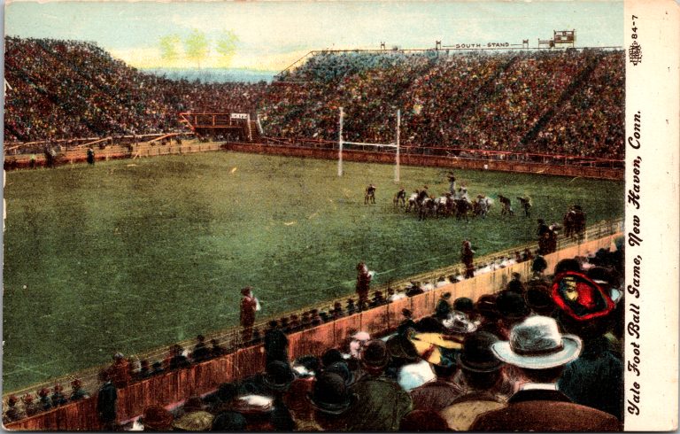 Yale Field opened on October 1, 1884, as the university’s first large-scale outdoor football venue, debuting with a game against Wesleyan. Built during a period of rapidly growing interest in college athletics, the wooden grandstand complex eventually expanded to hold nearly 33,000 spectators—making it one of the largest athletic facilities in the country at the time. It served as the first home of Yale football during the Walter Camp era, hosting national powers and cementing Yale’s early dominance in the sport. By the 1910s, however, the aging structure could no longer meet the demands of modern crowds, prompting Yale to build the much larger Yale Bowl. After the team moved to play in Yale Bowl in 1914, the original Yale Field was demolished, but a subsequent Yale Athletics facility—also dubbed Yale Field—now exists in its place.